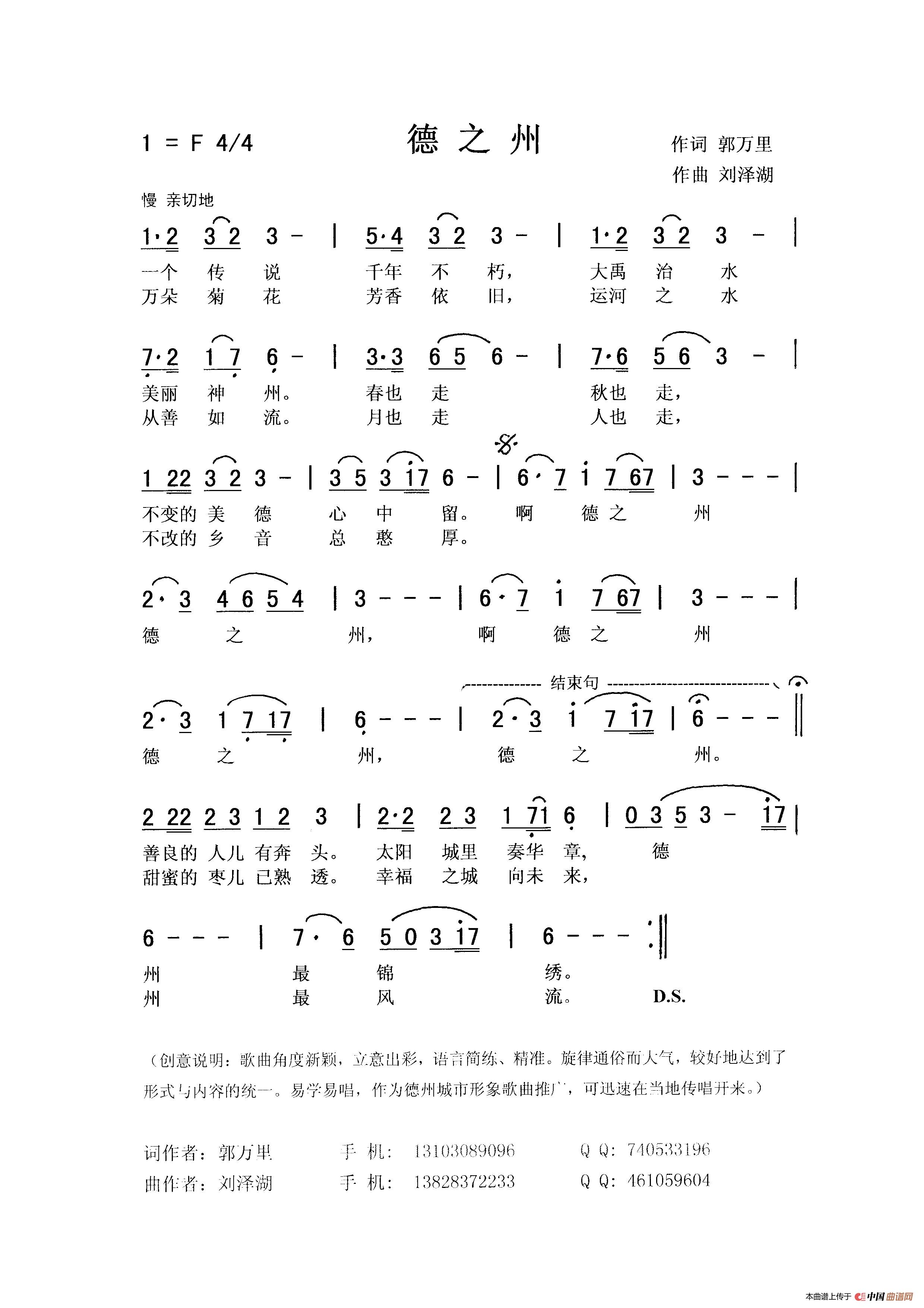 关于《德之州》曲谱的评论