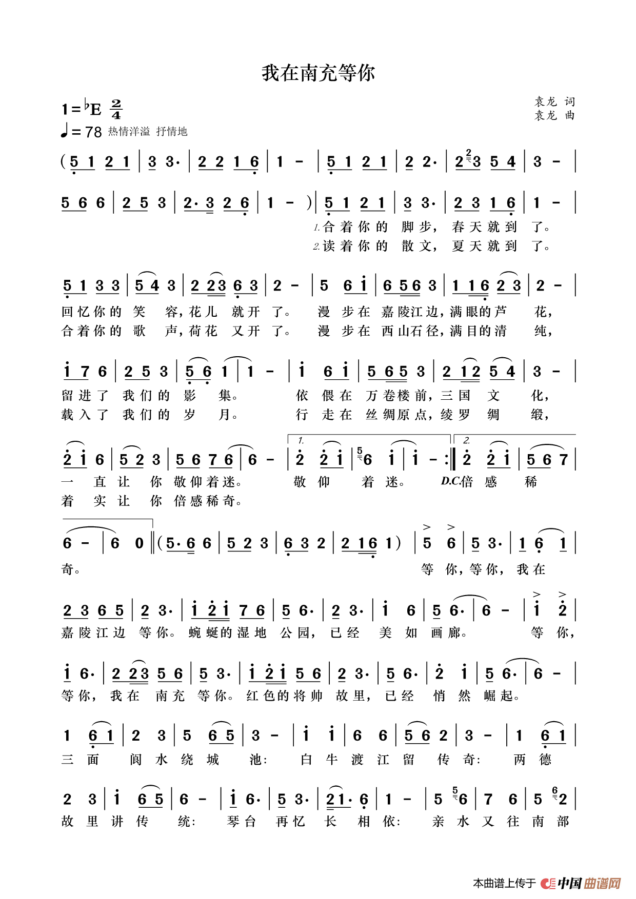 合着你的脚步,春天就到了。回忆你的笑容,花儿就开了。漫步在嘉陵江边,满眼的芦花,留进了我们的记忆。我在南充等你。你的音容笑貌,在我的心里。南充的美丽风光,一直在等待着你。