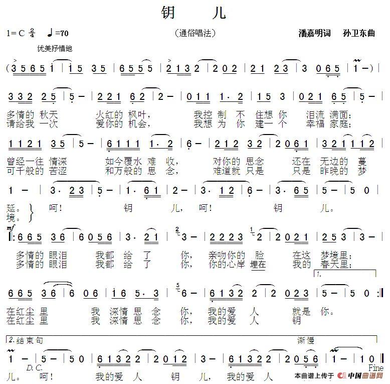 钥儿1(潘嘉明词 孙卫东曲)