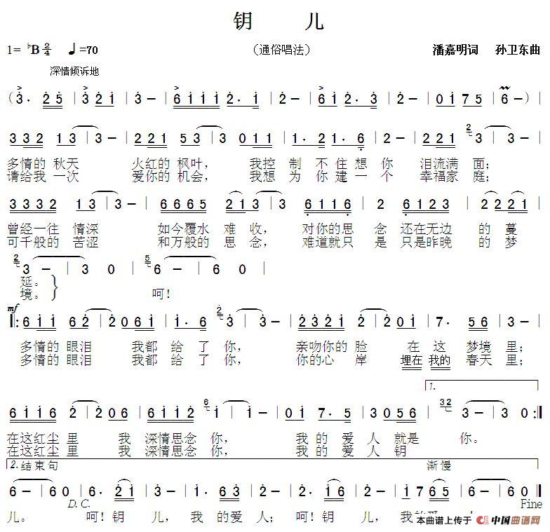 关于《钥儿2(潘嘉明词 孙卫东曲)》曲谱的评论