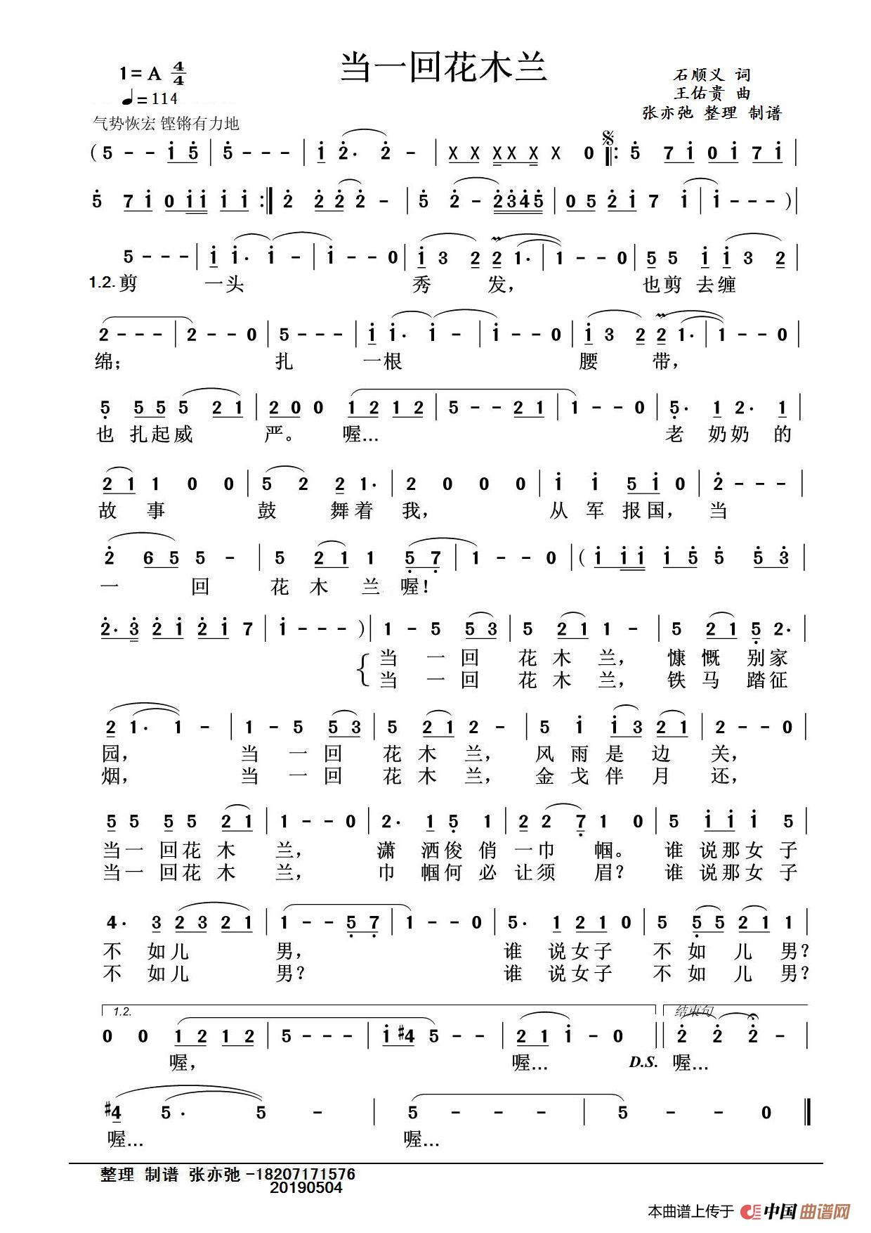 关于《当一回花木兰(亦弛整理版)》曲谱的评论