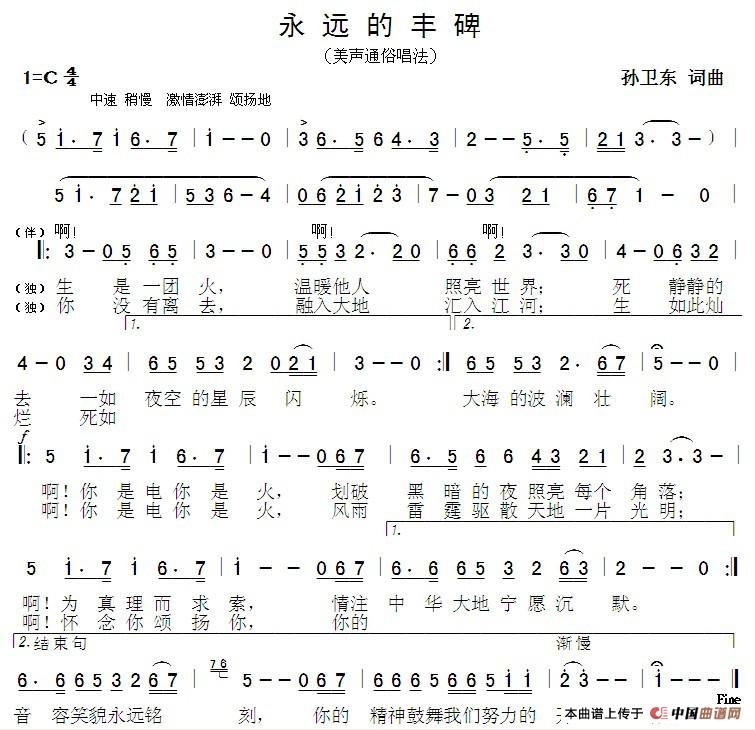 关于《永远的丰碑(孙卫东词曲)》曲谱的评论