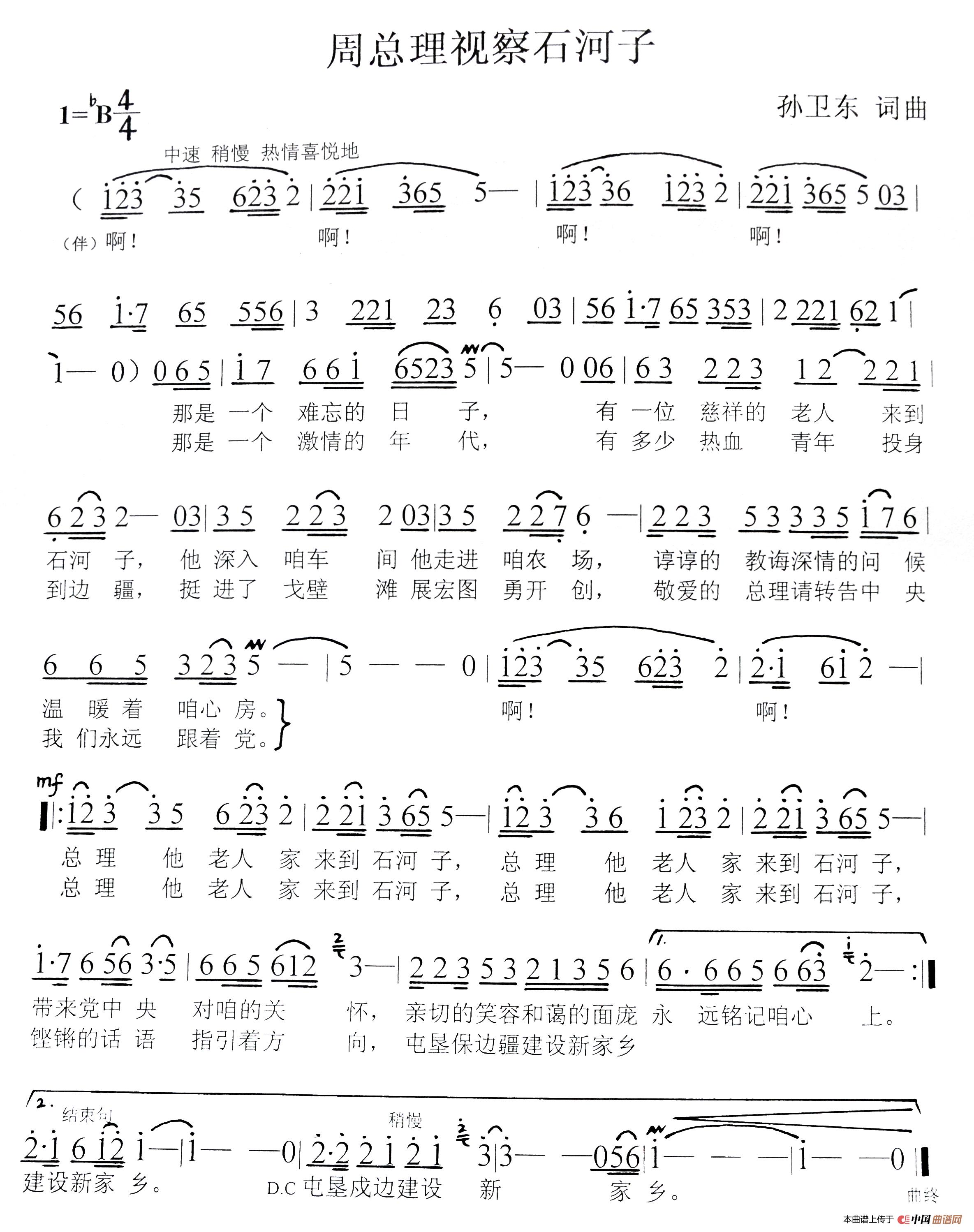 关于《周总理视察石河子(孙卫东词曲)》曲谱的评论