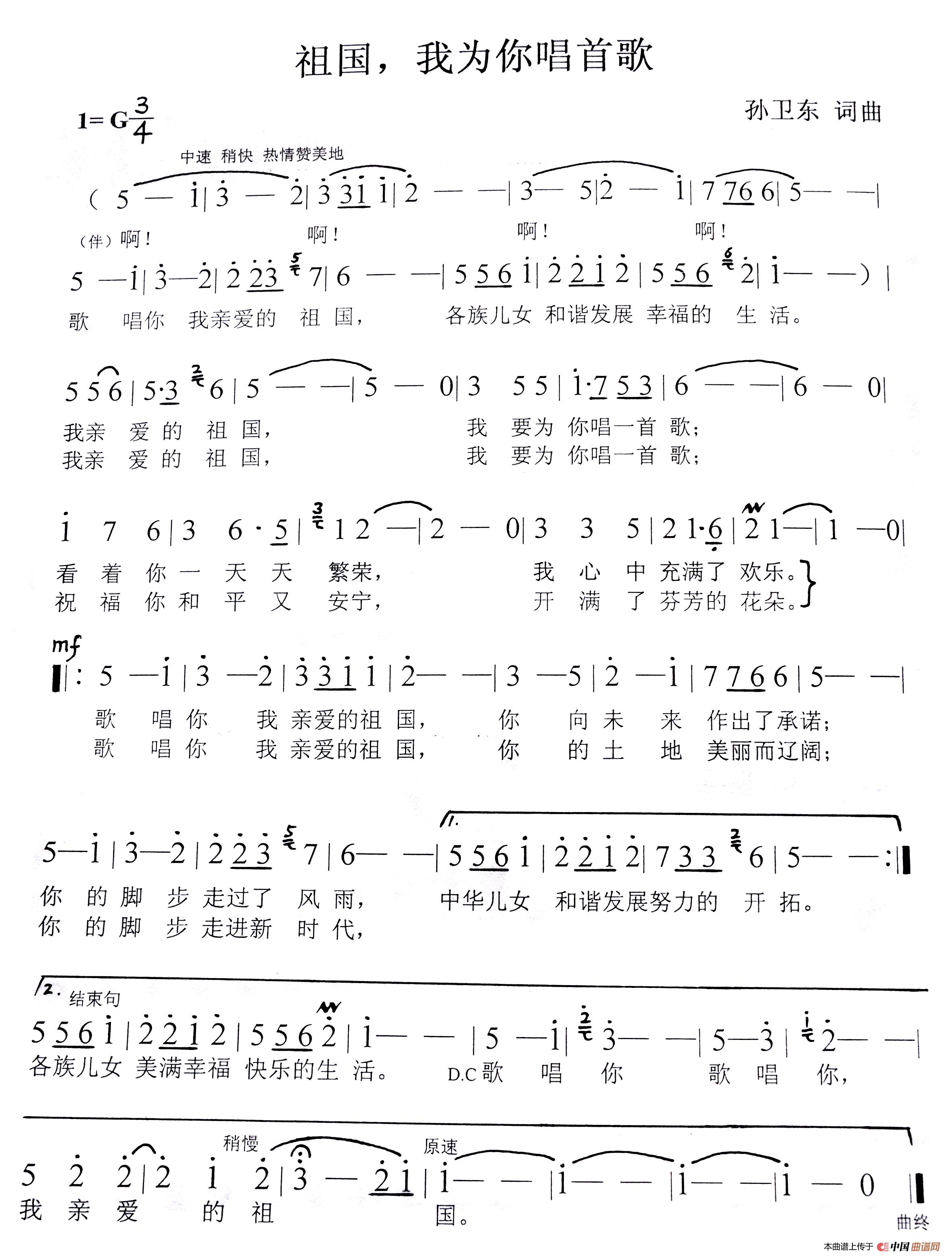 关于《祖国我为你唱首歌(孙卫东词曲)》曲谱的评论