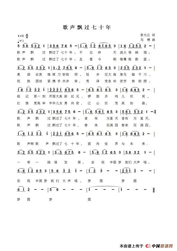 马啸老师作了两个版本 《歌声飘过七十年》版本一、版本二,伴奏也是两个 版本一和版本二