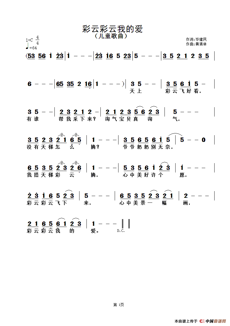 关于《彩云彩云我的爱》曲谱的评论