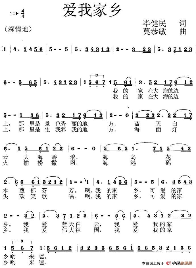 关于《爱我家乡 》曲谱的评论