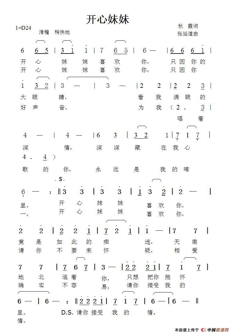 开心妹妹(秋霞词张延道曲)
