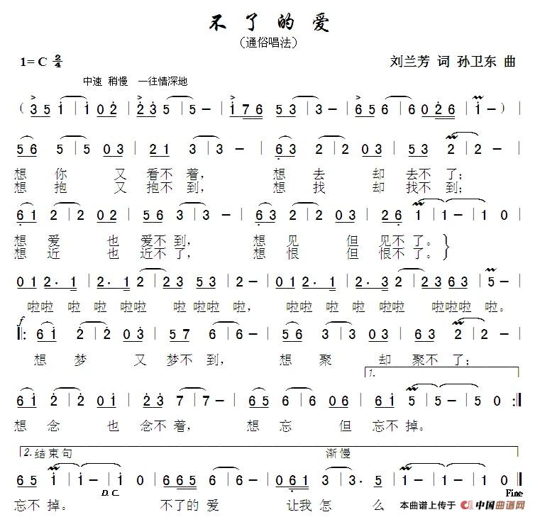 关于《不了的爱(刘兰芳词孙卫东曲)》曲谱的评论