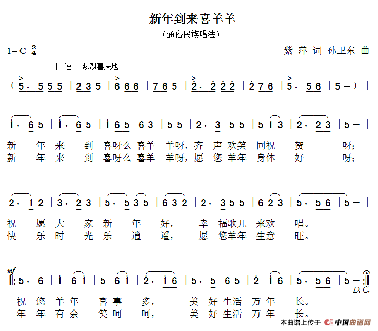 关于《新年到来喜羊羊(紫萍词孙卫东曲)》曲谱的评论