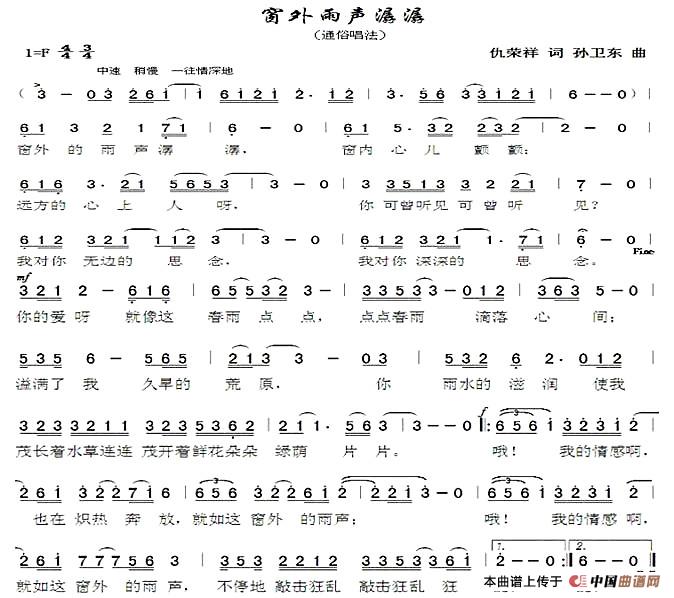 关于《窗外雨声潺潺(仇荣祥词孙卫东曲)》曲谱的评论