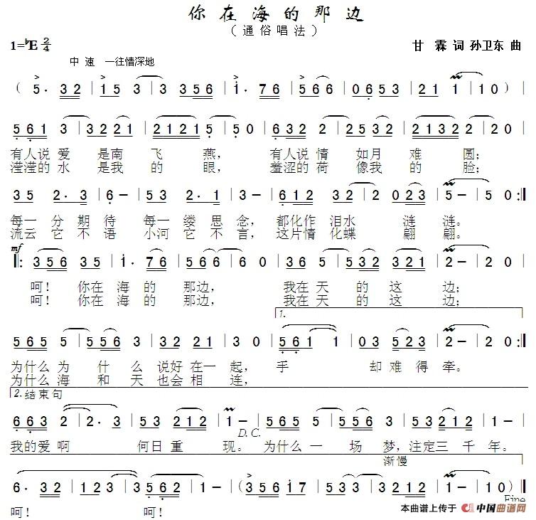关于《你在海的那边(甘霖词孙卫东曲)》曲谱的评论