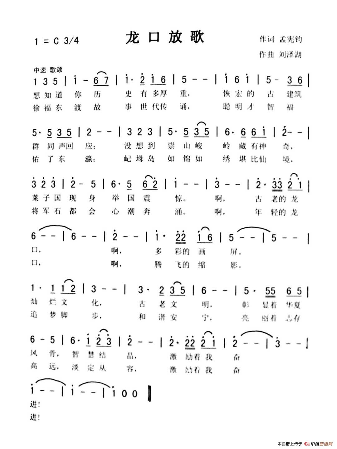 2014年,山东龙口市委宣传部面向海内外征集龙口市歌。