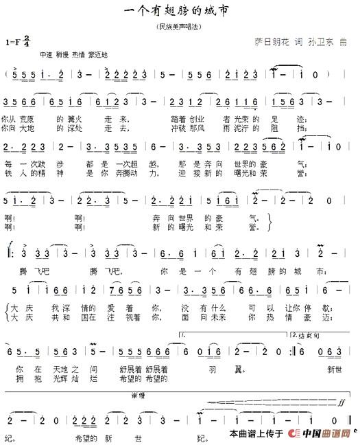 关于《一个有翅膀的城市(萨日朗花词孙卫东曲)》曲谱的评论