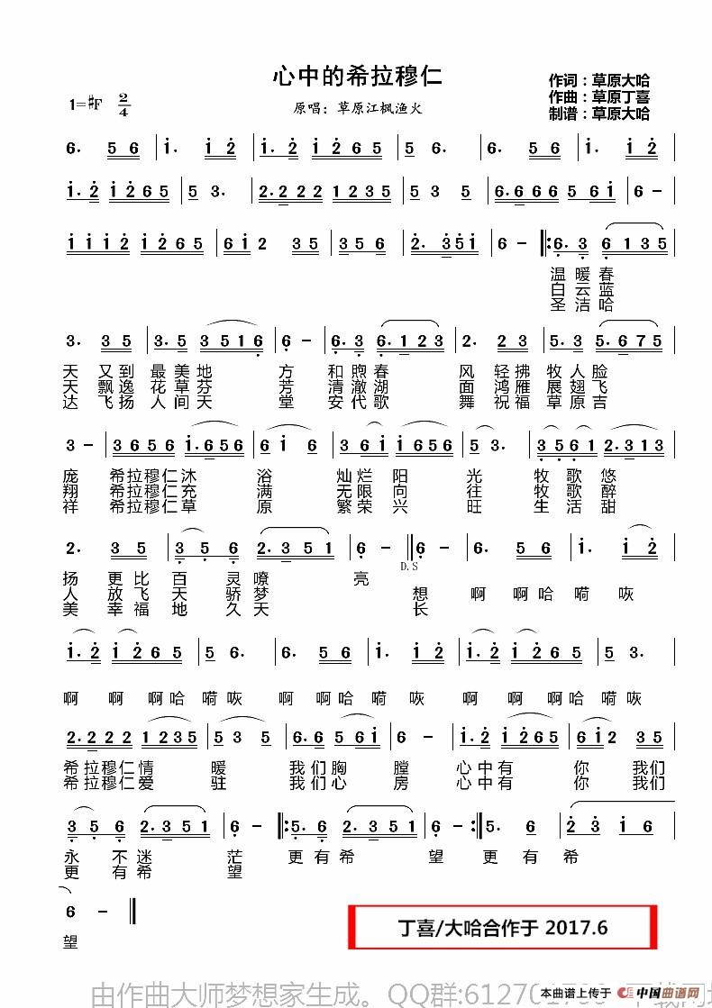 心中的希拉穆仁(1=#F4/4中速深情地)