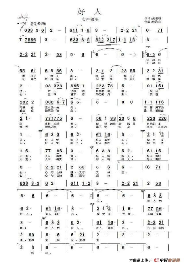 关于《好人》曲谱的评论