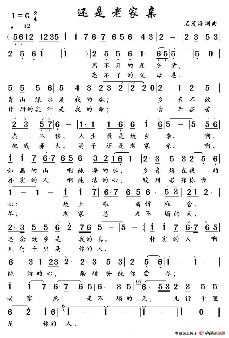 《还是老家亲 (石茂海词、曲)》文本歌词