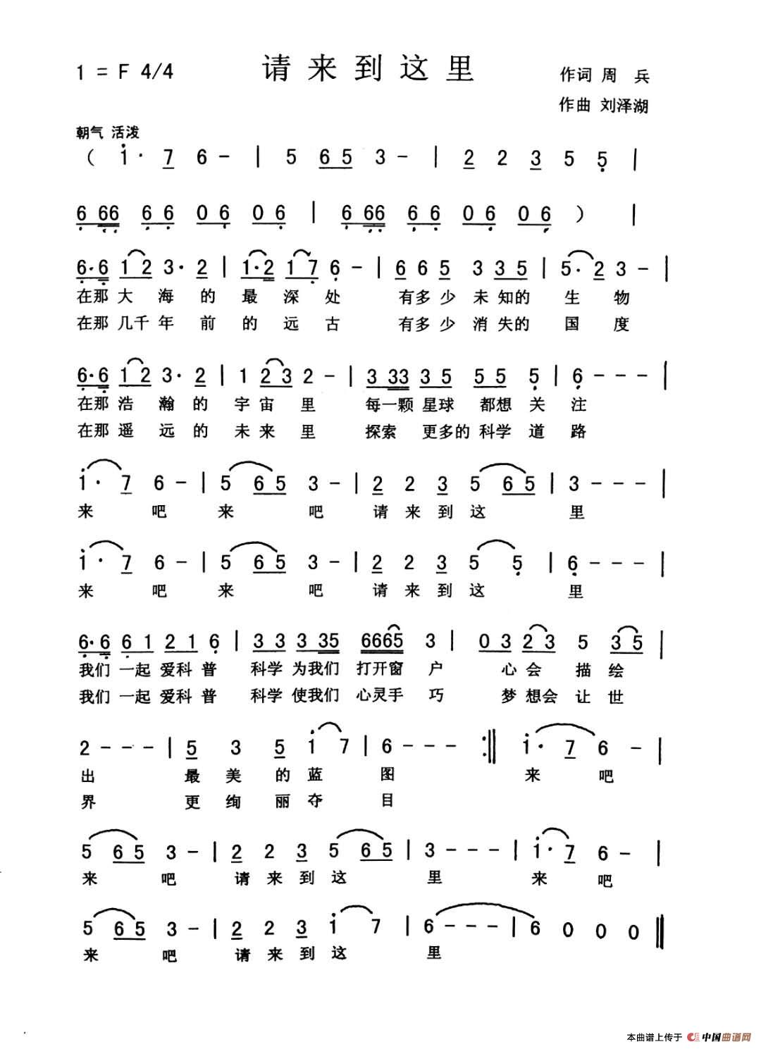 关于《请来到这里》曲谱的评论