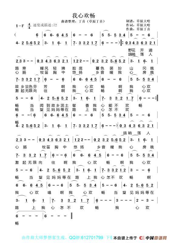 我心欢畅 朝鲜音乐 草原丁喜记谱整理 草原大哈作词 草原大哈制谱上传