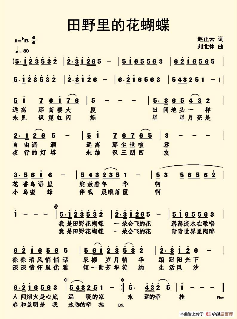 关于《田野里的花蝴蝶》曲谱的评论