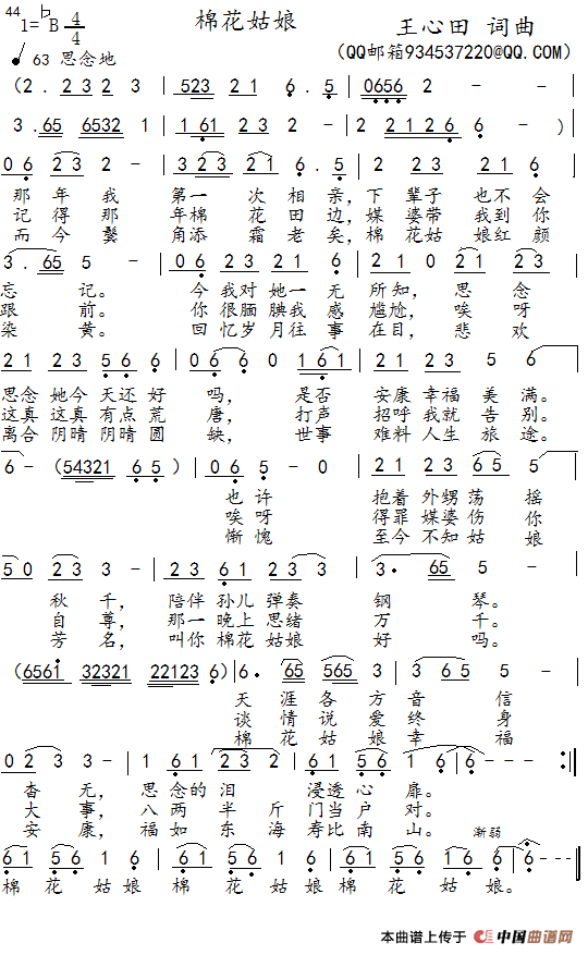 关于《棉花姑娘》曲谱的评论