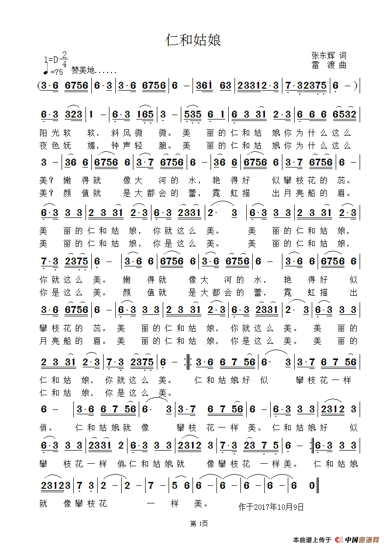 提示:在曲谱图片上单击右键,选择"图片另存为..."即可将曲谱保存到您的电脑中,打印时候可将图片插入到WORD中,调整合适大小打印即可。