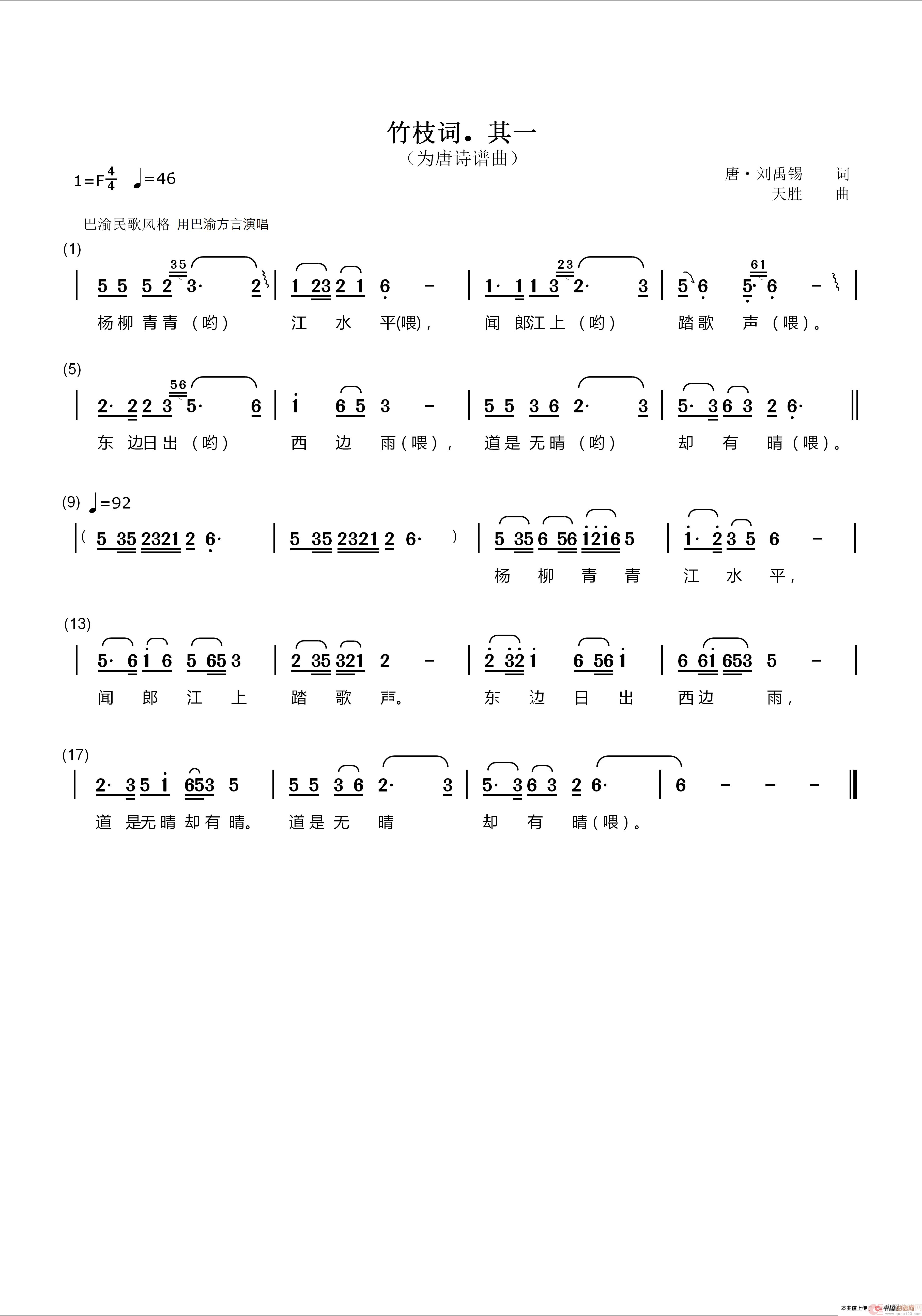 关于《竹枝词.其一》曲谱的评论