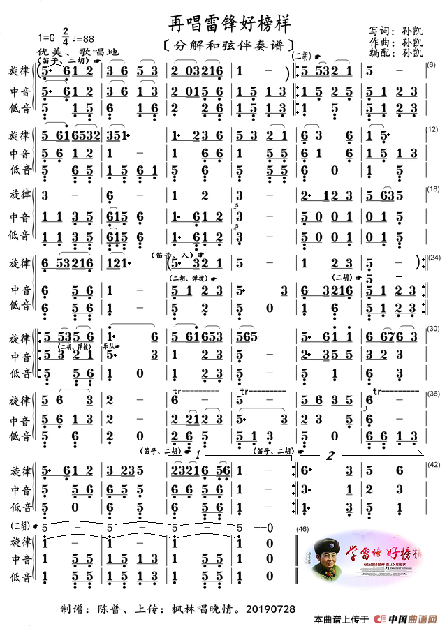 再唱雷锋好榜样(分解和弦伴奏总谱)