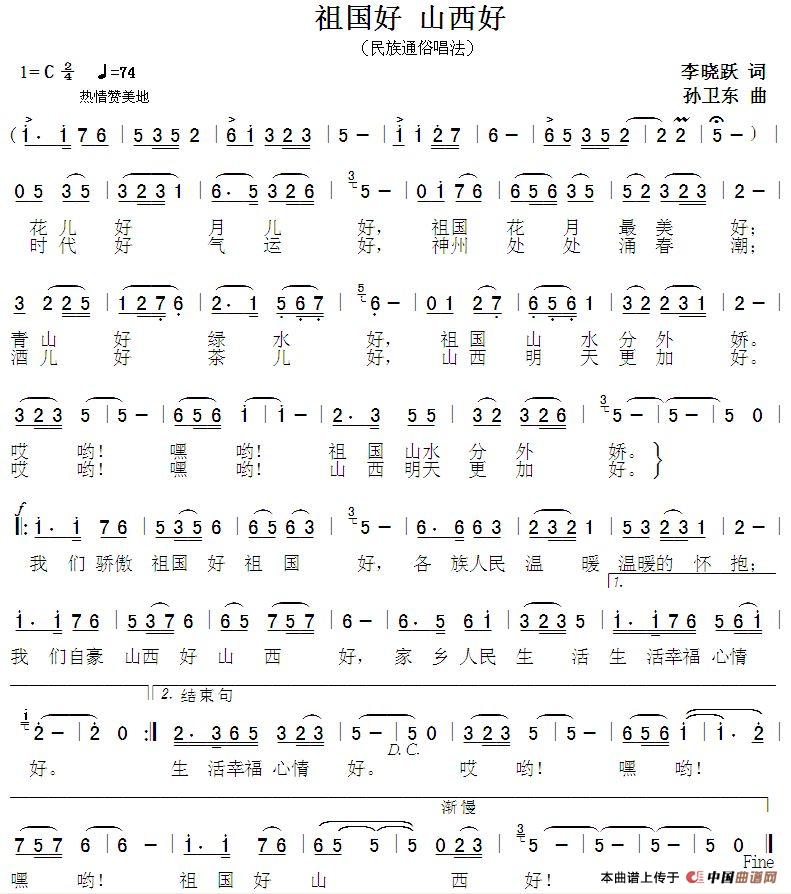 关于《祖国好山西好(李晓跃词孙卫东曲)》曲谱的评论