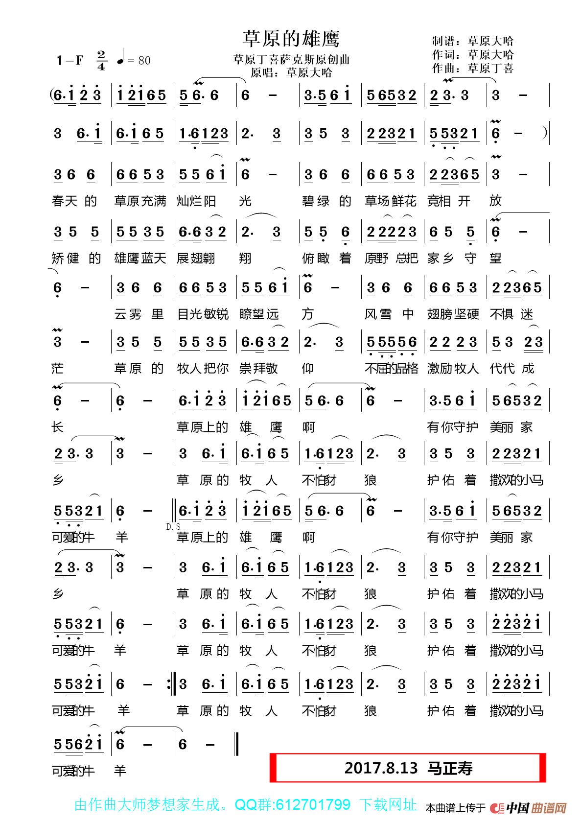 草原的雄鹰 作词: 草原大哈 作曲: 草原丁喜 男原唱:草原大哈 女原唱:酒仙吕洁