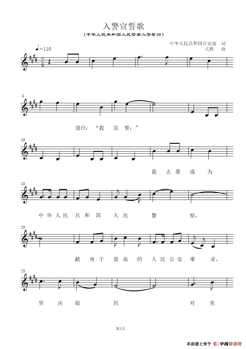 入警宣誓歌(五线谱)(中华人民共和国人民警察入警誓词)