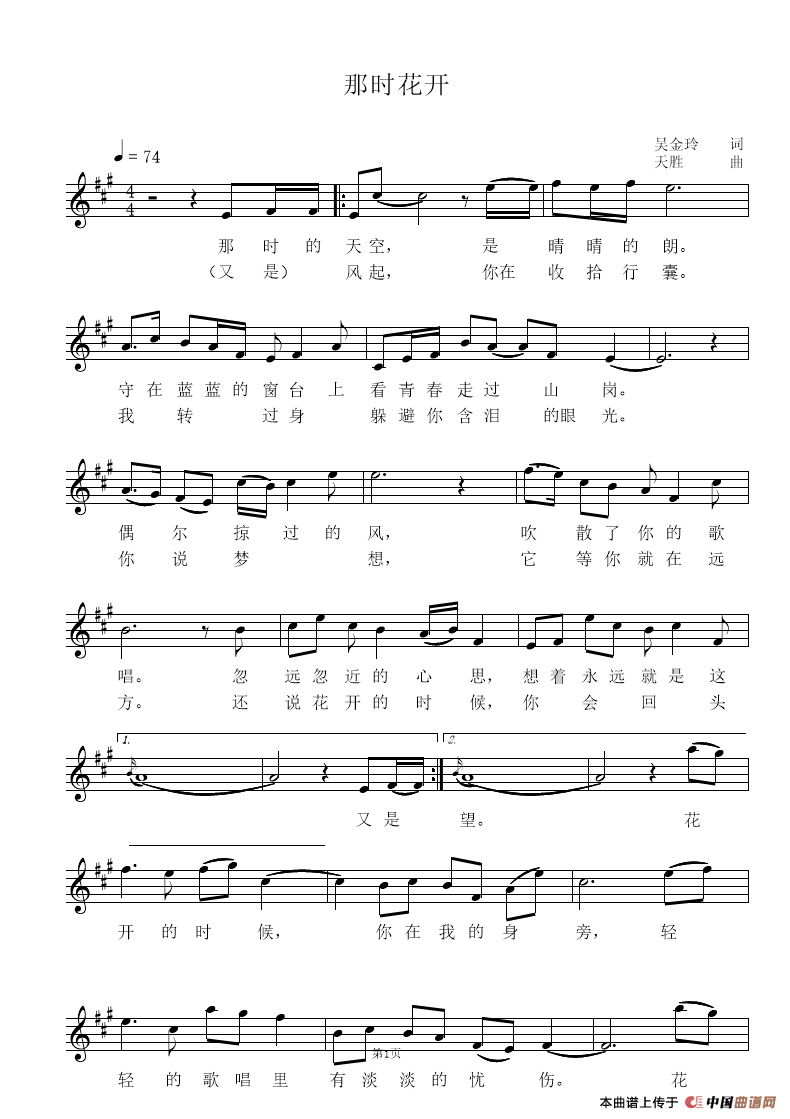 提示:在曲谱图片上单击右键,选择"图片另存为..."即可将曲谱保存到您的电脑中,打印时候可将图片插入到WORD中,调整合适大小打印即可。