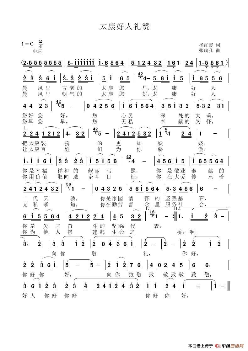 关于《太康好人礼赞》曲谱的评论