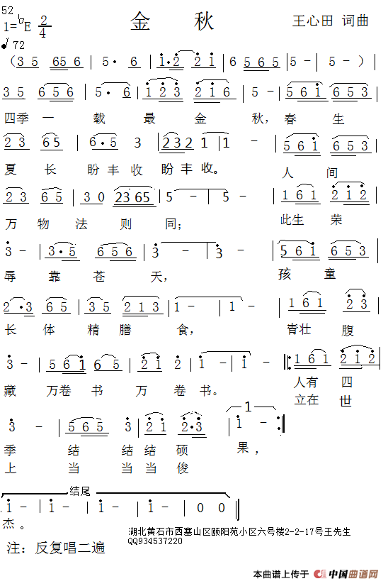 关于《金秋》曲谱的评论