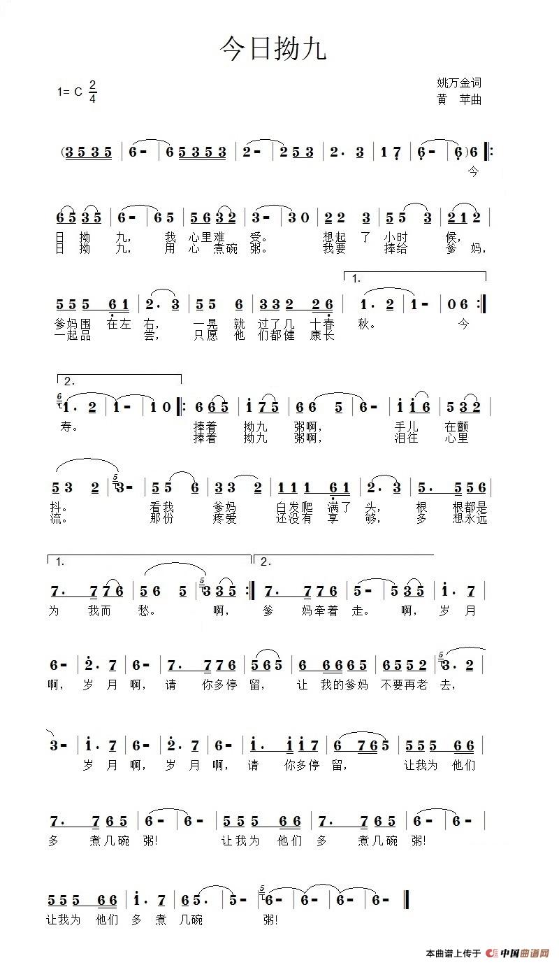 拗九节,喝着香甜的拗九粥,感慨着“谁言寸草心,报得三春晖”。多希望岁月能够停留,让父母不再老去,让我能为父母多煮几碗粥......谨以这首《今日拗九》祝愿父母永远健康长寿!