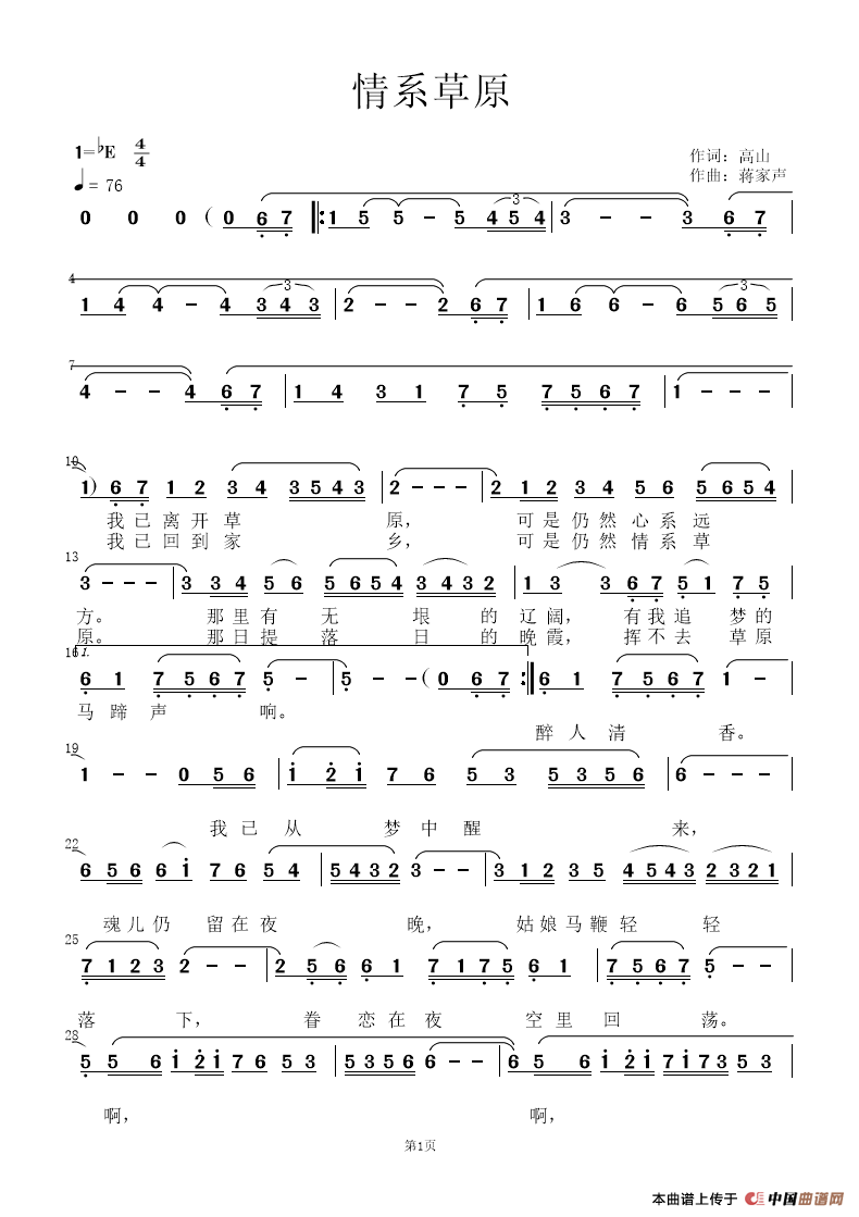 作词:高山   作曲:蒋家声   来源:谱友蒋家声上传   上传:蒋家声   日期:2019-11-02   浏览次数: