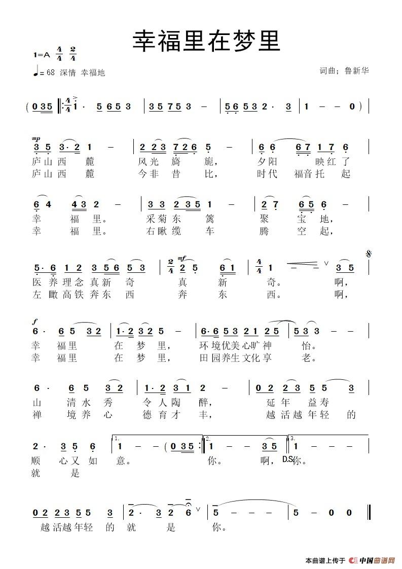 关于《幸福里在梦里》曲谱的评论