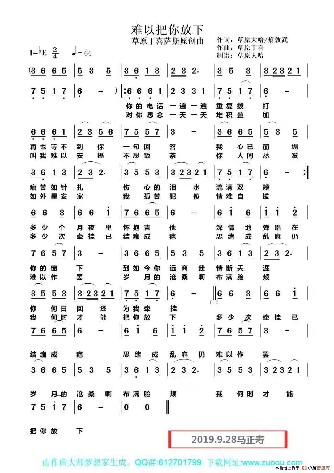 提示:在曲谱图片上单击右键,选择"图片另存为..."即可将曲谱保存到您的电脑中,打印时候可将图片插入到WORD中,调整合适大小打印即可。