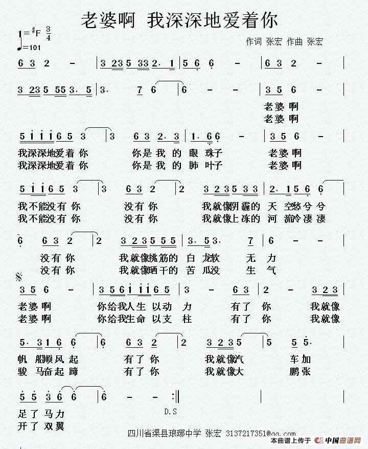 关于《老婆啊 我深深地爱着你》曲谱的评论