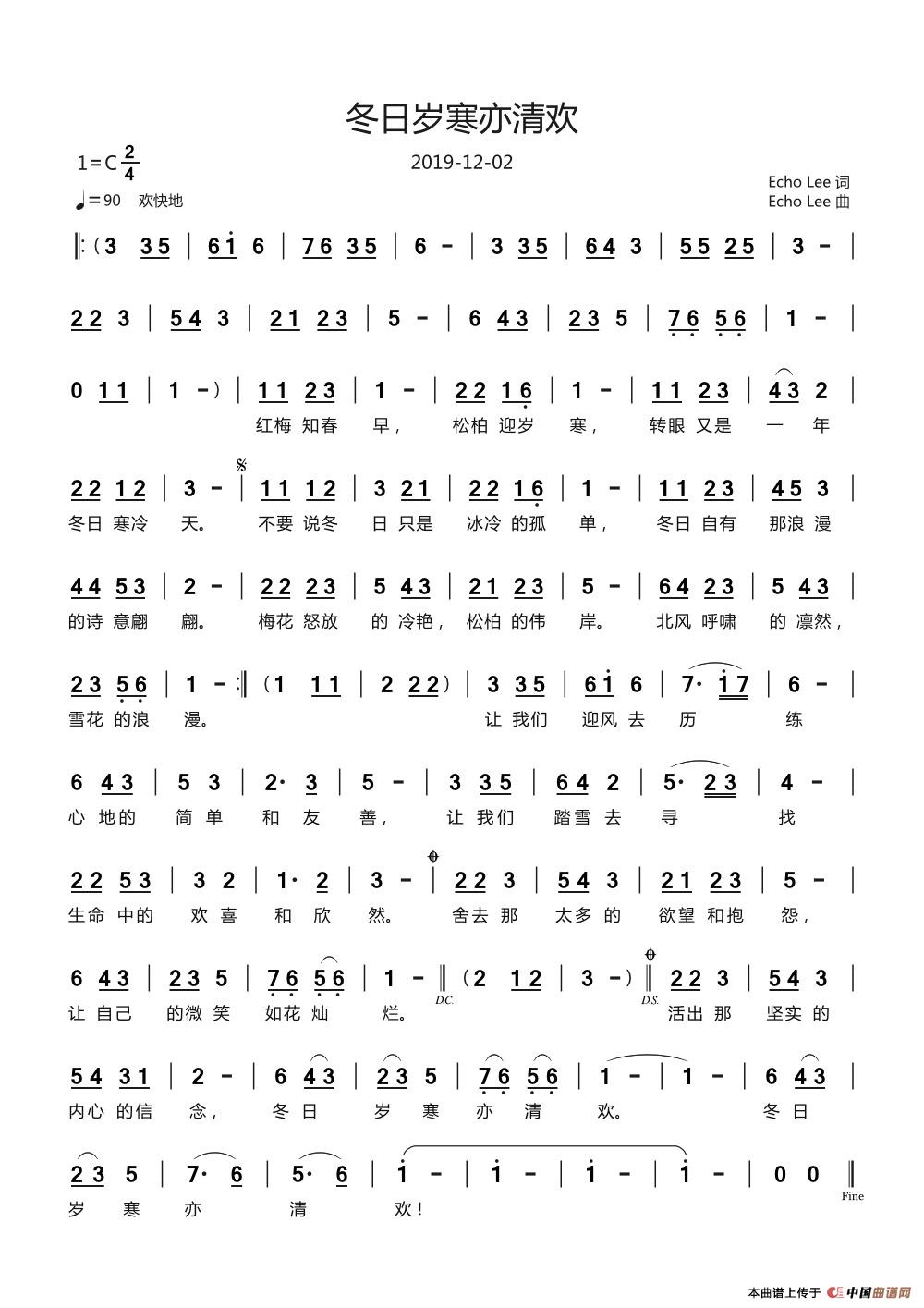 关于《冬日岁寒亦清欢》曲谱的评论