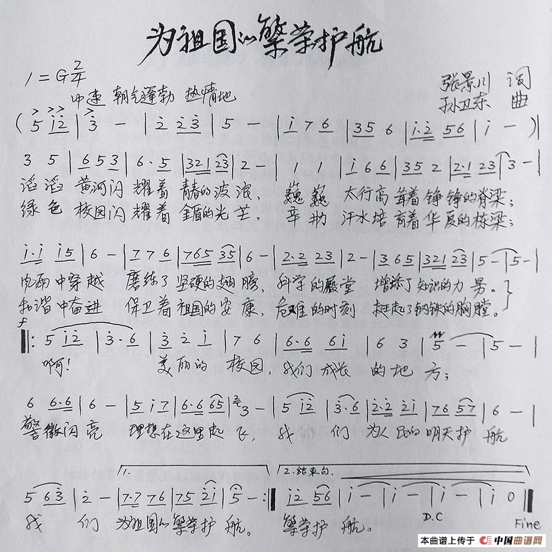 关于《为祖国的繁荣护航(张景川词孙卫东曲)》曲谱的评论