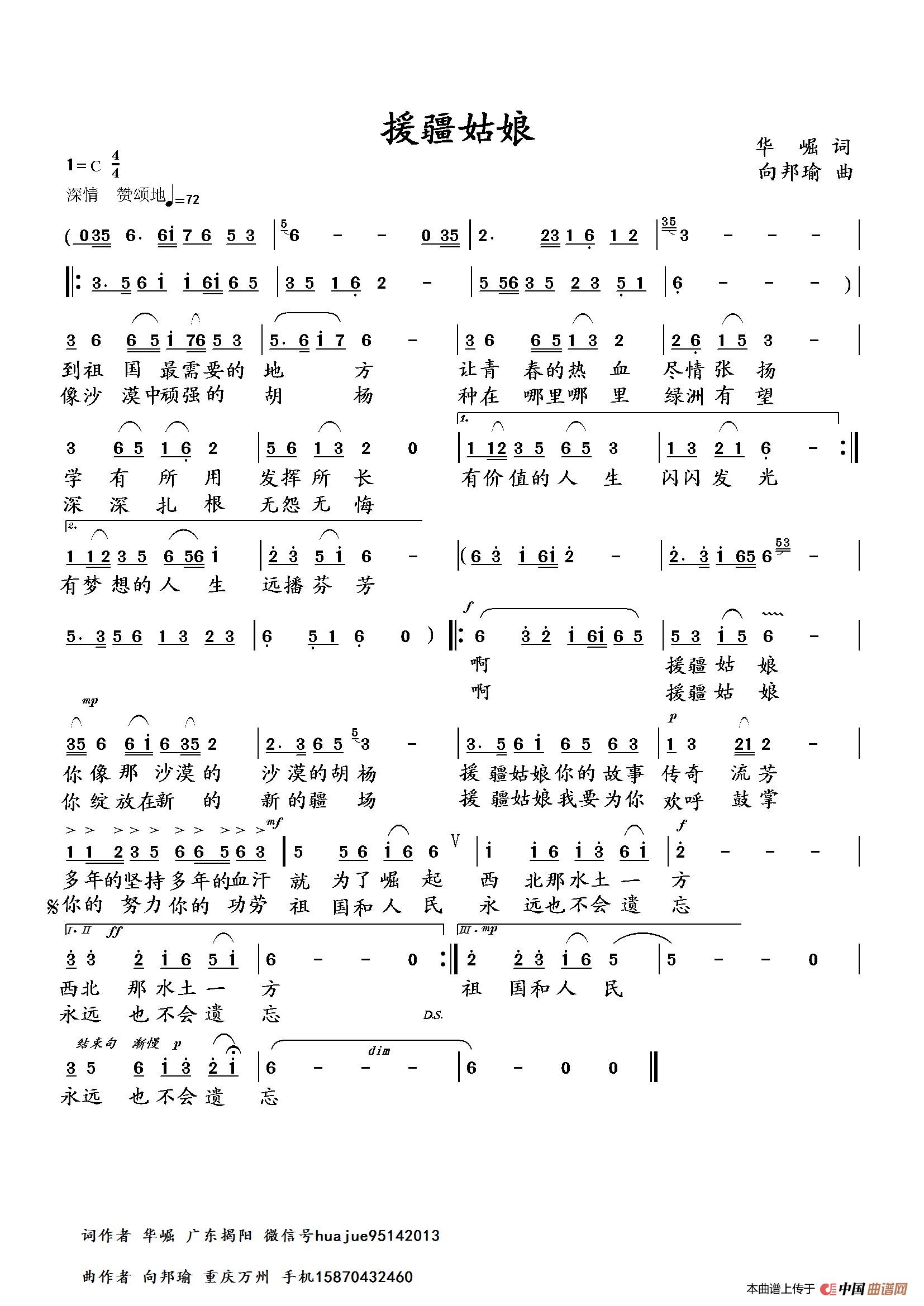 《援疆姑娘》文本歌词