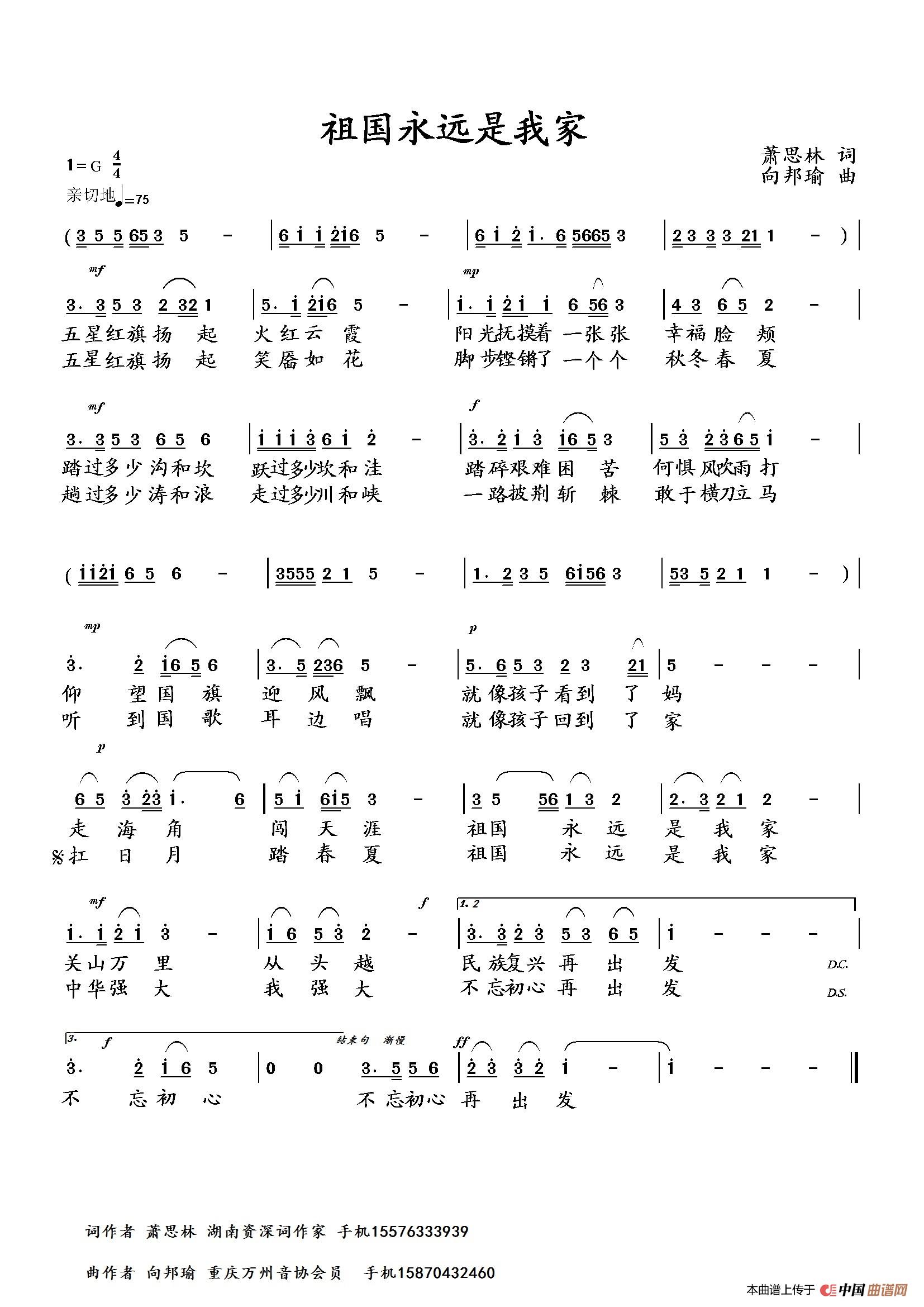《祖国永远是我家》文本歌词