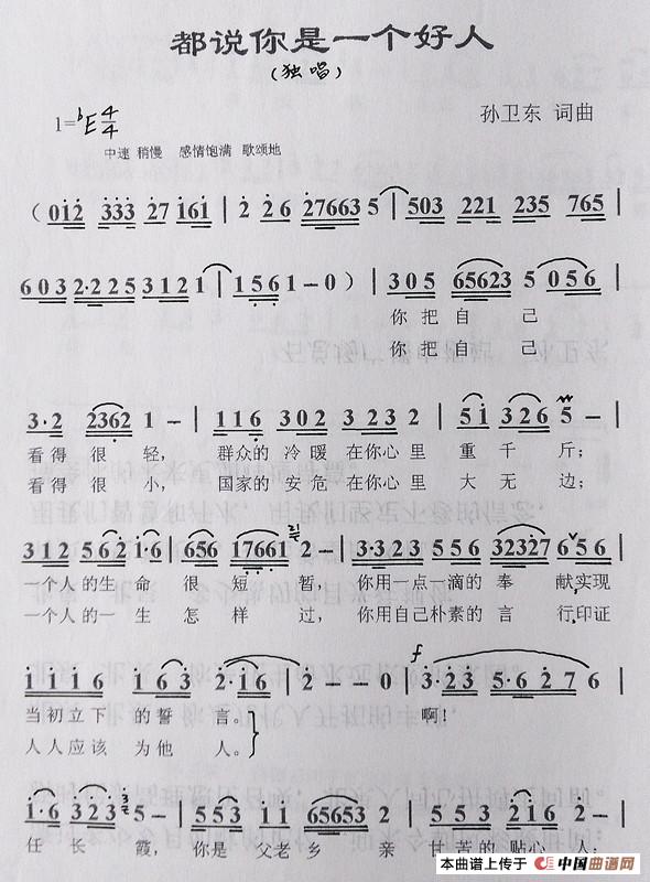 关于《都说你是一个好人(孙卫东词曲)》曲谱的评论