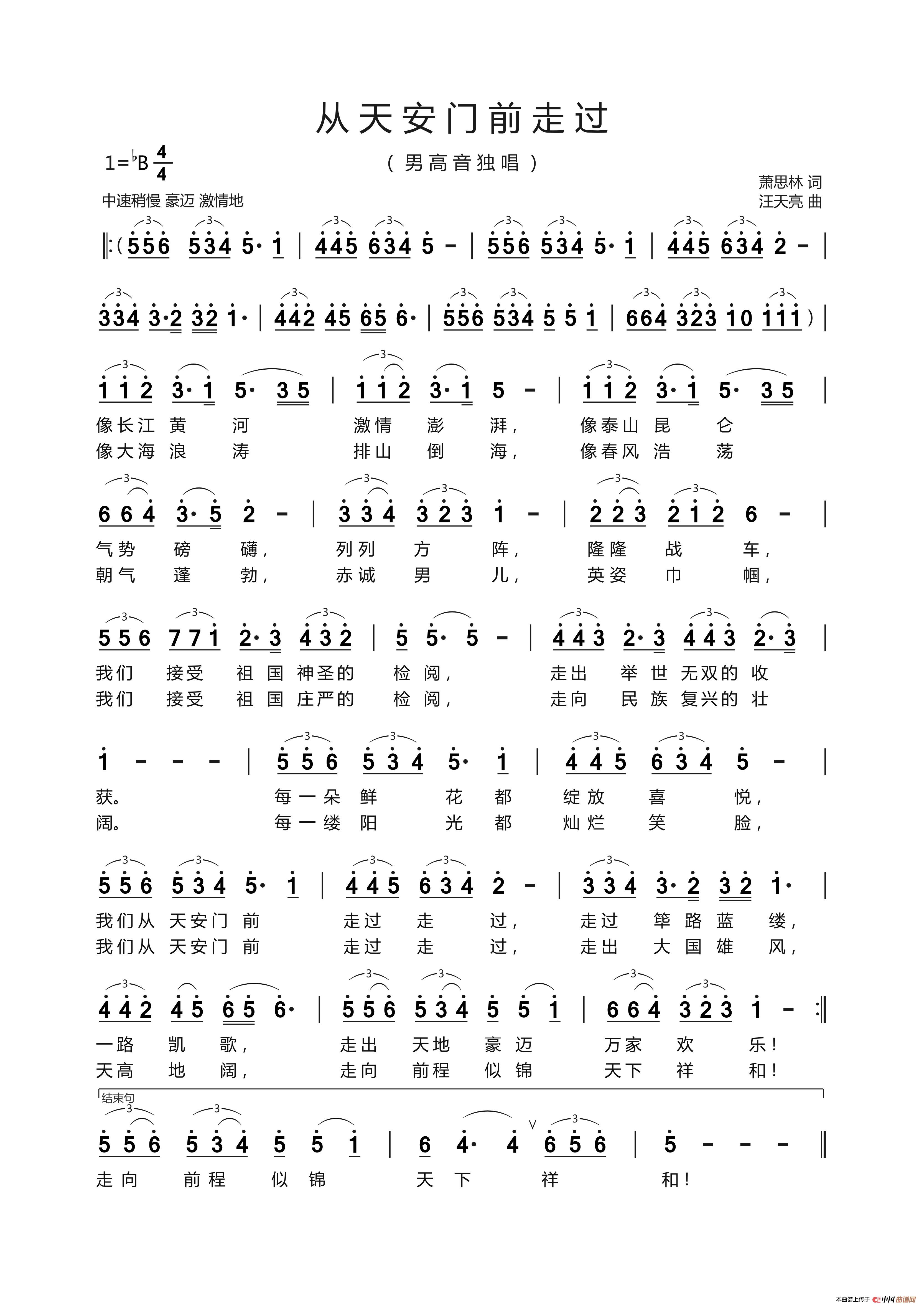从天安门前走过(萧思林 词 汪天亮 曲)
