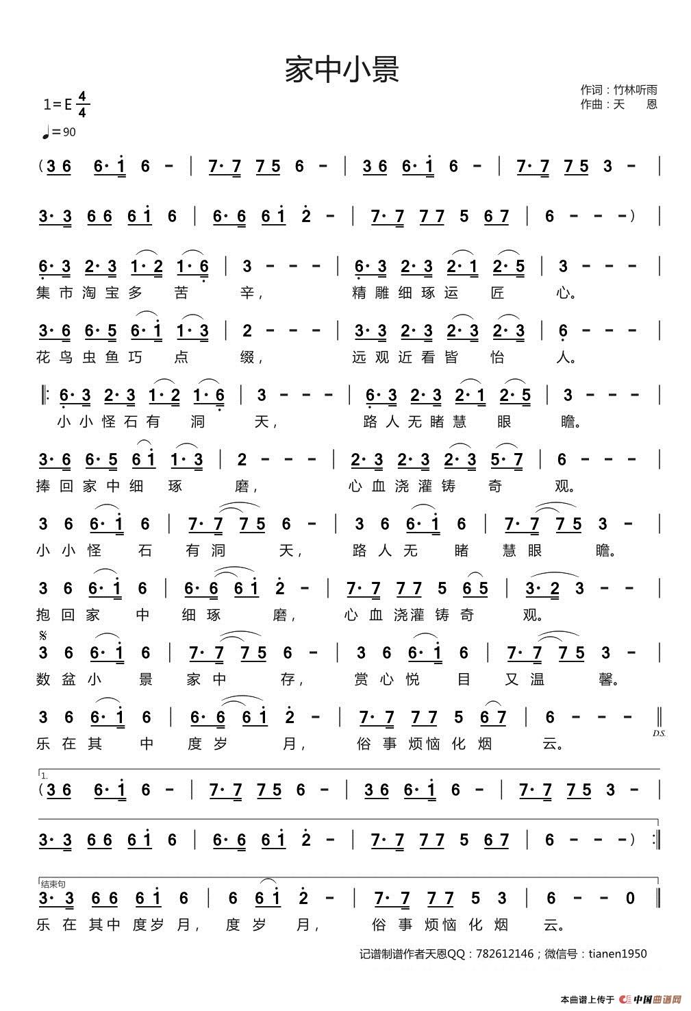《家中小景》文本歌词