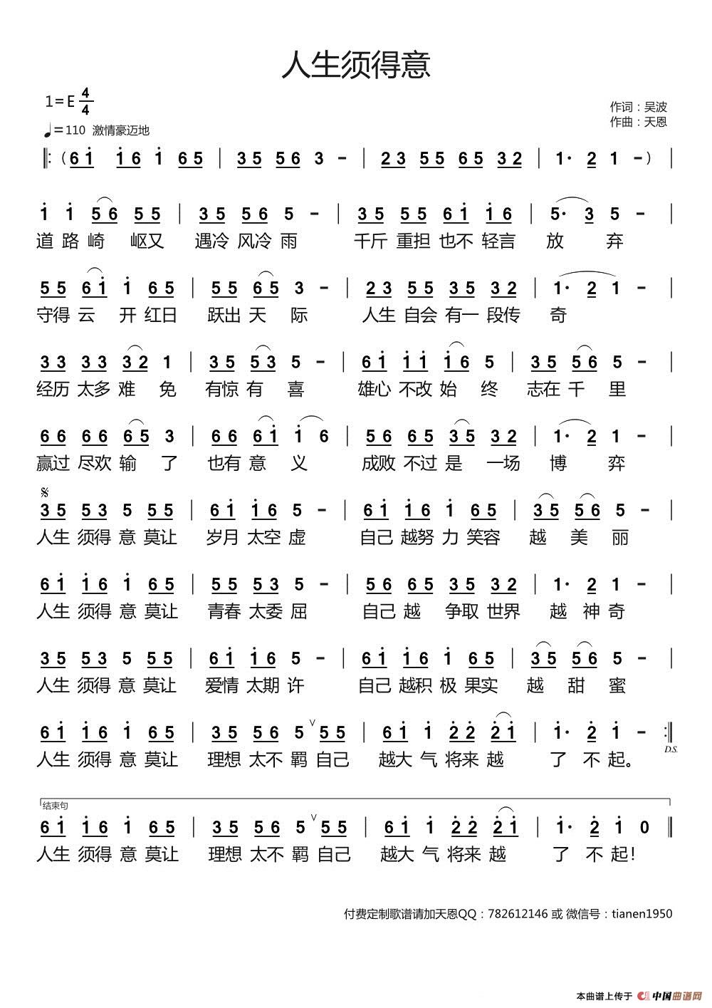 《人生须得意》文本歌词