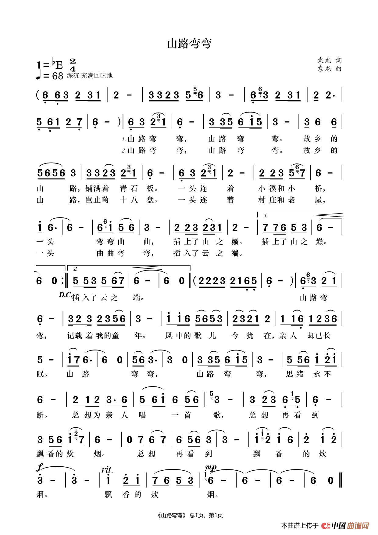 《山路弯弯》文本歌词