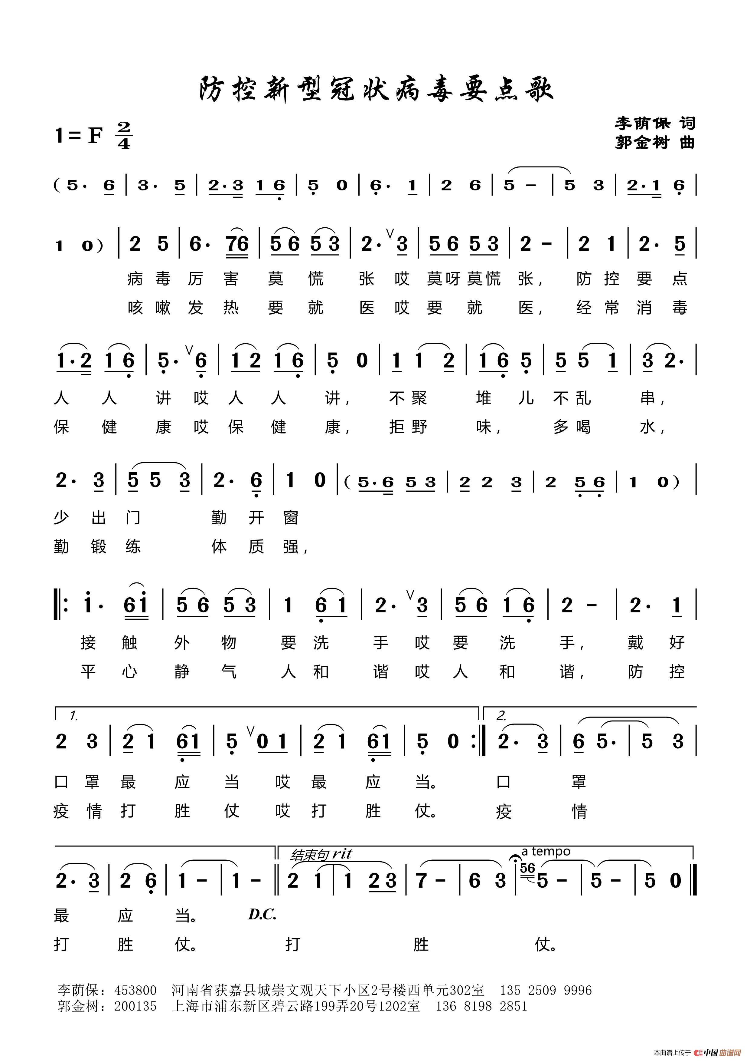 关于《防控新型冠状病毒要点歌》曲谱的评论