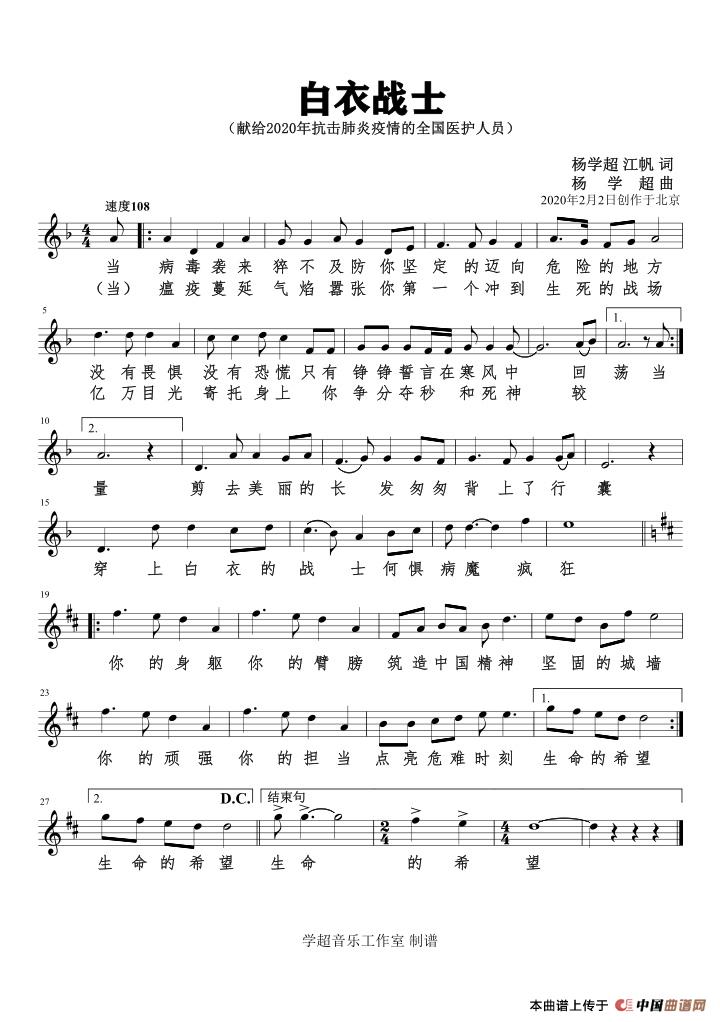 关于《白衣战士》曲谱的评论